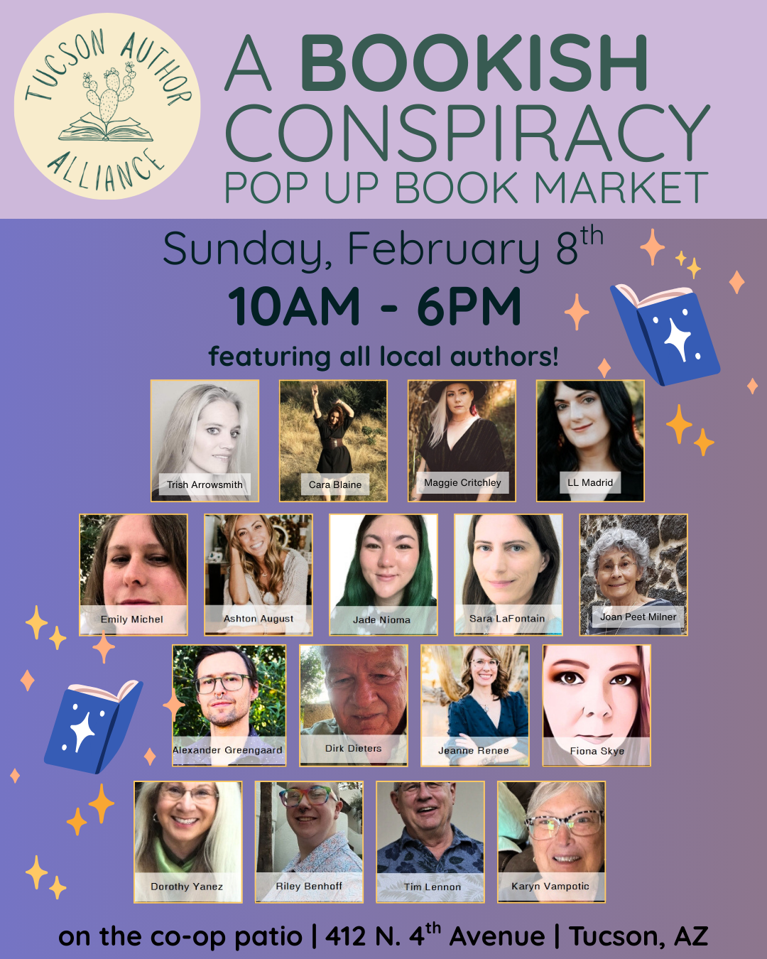We are excited to partner with the Tucson Author Alliance to host their very first Pop Up Book Market featuring 17 local authors! Find your new favorite book & author in a huge variety of genres, all from your own community.
